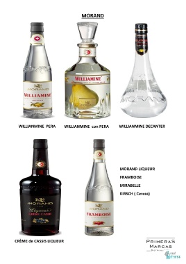 MORAND WILLIANMINE PERA WILLIANMINE con PERA WILLIANMINE DECANTER MORAND LIQUEUR FRAMBOISE MIRABELLE KIRSCH ( Cereza) CRÈME de CASSIS LIQUEUR